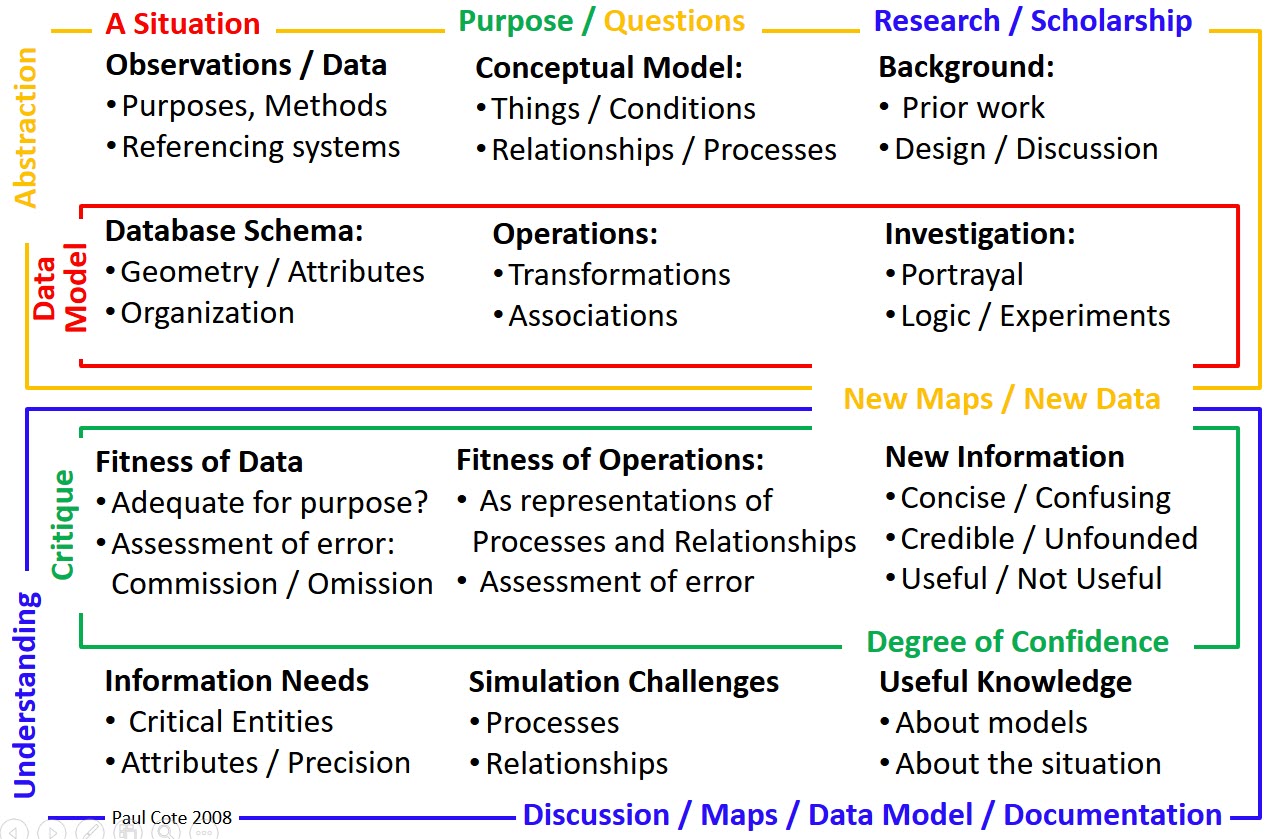 Flip through the slides below to get an idea of how terms are organized in the framework for designing and evaluating GIS models in decision-making situations.